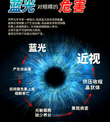 蓝光对眼睛的长期影响类似于紫外线对皮肤的损害,可能导致眼部组织提前老化。这种老化不仅限于皮肤,还包括眼部周围的肌肉和连接组织,甚至可能影响到泪腺的功能。