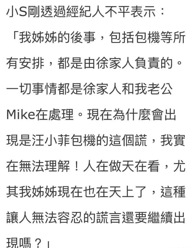 小S的这种回应,也让大家觉得汪小菲和张兰的这种行为真的不应该,现在人都已经离世了,难道他们还要做着一些昧着良心吃红利的事情吗?