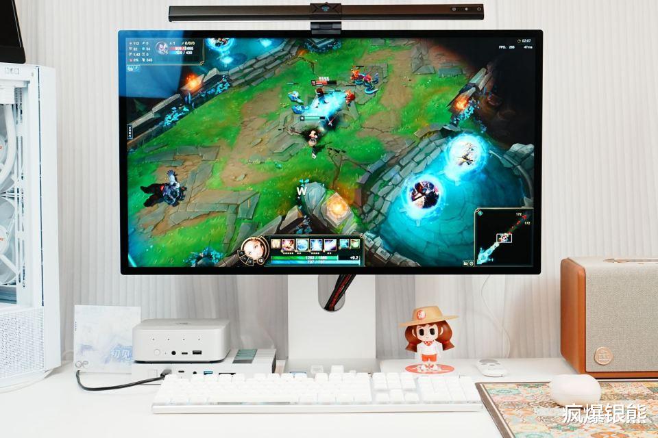 背面侧设计接口如上图,1个DC电源口,3个USB-A口用来外接键鼠刚合适,当然你要用来传输数据那也是没任何问题的,因为这三个USB-A口也全是USB3.2Gen2协议,传输速度高达10Gbps;网口上磐镭Link G2E给配置了一个2.5G,不管是打游戏还是局域网传输,速度都更有保障;HDMI接口采用了最高的2.1标准,DP也采用了2.1协议,均支持最高8K60Hz/4K240Hz的视频画面传输。