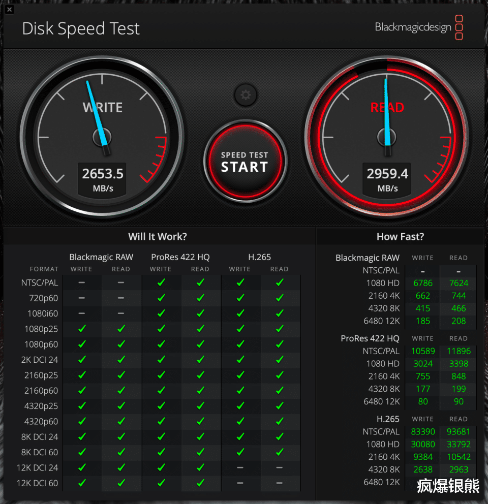 这里我也用手里的苹果Mac miniM4做了相应的速度测试,受限于M4的雷电4协议,笔者手里的雷电4固态硬盘写入只有2600MB/s,读取稍好也就3000+MB/s,相较于Windows平台电脑而言差了不少。
