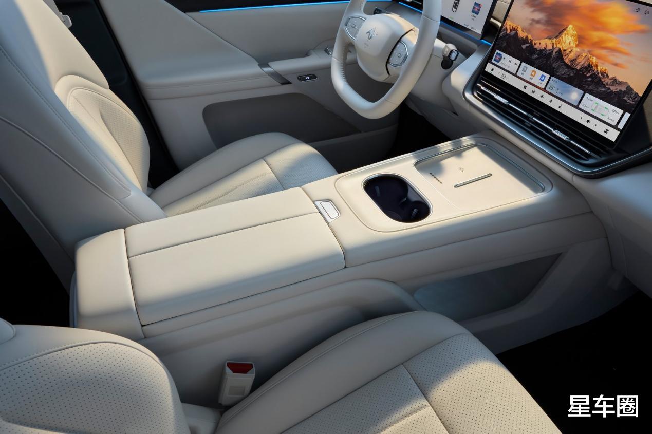 舒适配置的思路差异太明显了:启源Q07侧重前排零重力体验,eπ008却偏要让每个乘客都舒服。二排电动魔毯座椅能调角度、分腿托,想半躺想蜷着都随你,长途坐车再也不僵硬。标配的冷暖冰箱更是家庭刚需,夏天冰可乐、冬天热牛奶,带娃出行再也不用愁饮品温度,这可是启源Q07没有的暖心配置。全车裹满软乎乎的云感亲肌面料,摸起来像rua云朵,孩子爬来爬去不硌人;前后排都装了隔音玻璃,开车时车内安安静静,聊个天、听个歌都不费劲,比仅前排有隔音玻璃的体验更均衡。