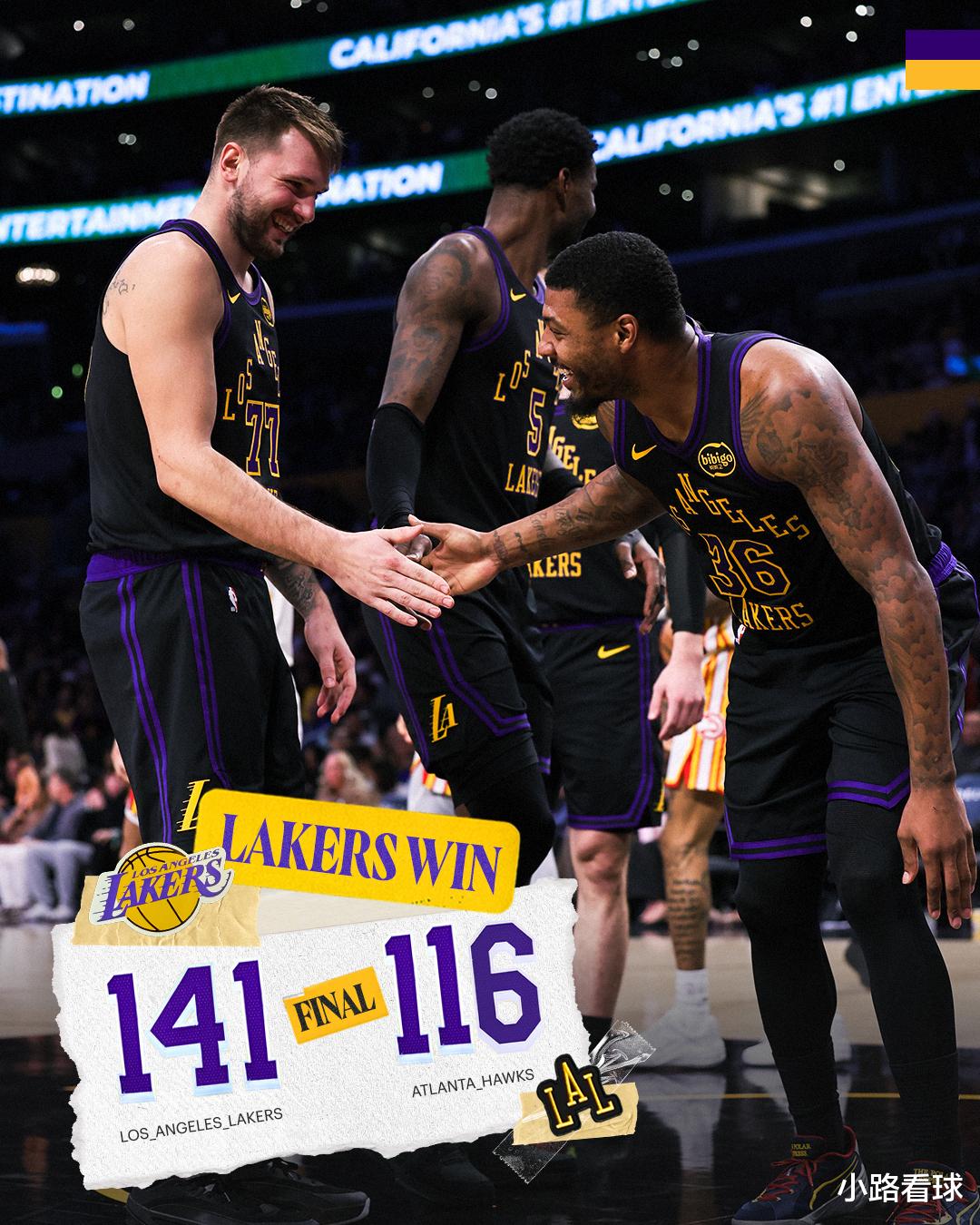 如果要用一个词来形容本赛季的湖人,那应该就是神鬼莫测了,原以为面对本赛季战绩糟糕的国王,湖人可以轻松拿捏,结果他们在客场惨败12分,背靠背遇上3连胜的老鹰,原以为湖人要遭遇一场溃败,四连败板上钉钉,结果湖人却拿出了全民皆兵的态度,在主场以141比116大胜老鹰25分,是触底反弹也好,是回光返照也罢,总之这场胜利对于湖人来说真的是太及时了,凭借本场比赛的胜利,湖人以24胜14负的战绩排在西部第五,暂时稳住了下滑的趋势。