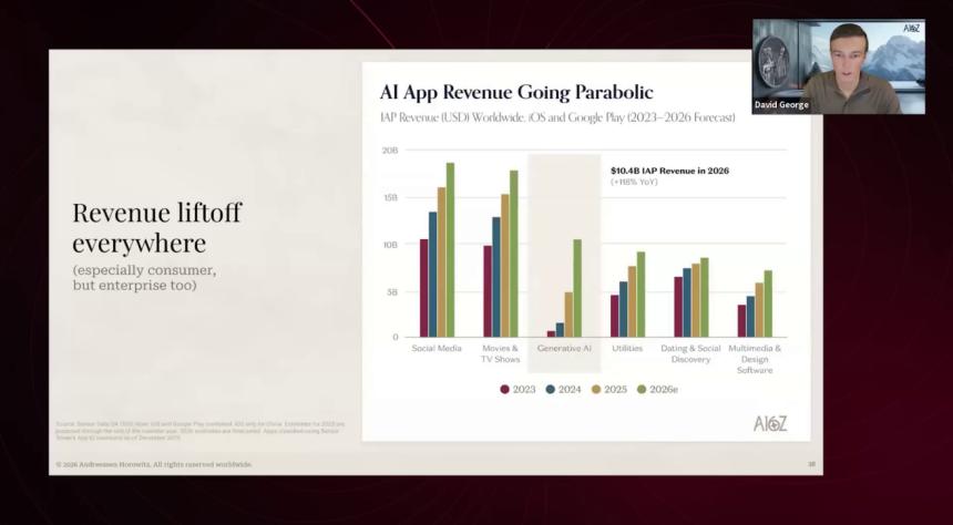 图丨 a16z 投资的公司贡献了约三分之二的私募 AI 市场营收(来源:a16z)