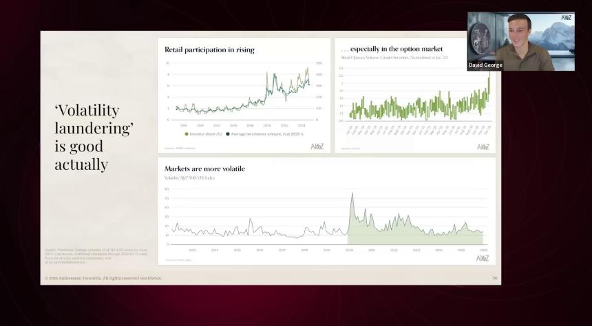 David George: 我知道大家对波动有很多疑问和担忧,波动问题在我们内部也是一个重要议题,尤其是创始人在讨论私募和公开市场的优劣时。有人在采访中提到,管理股价、避免波动,稳步推升股价,更容易留住和招聘员工,这我能理解。