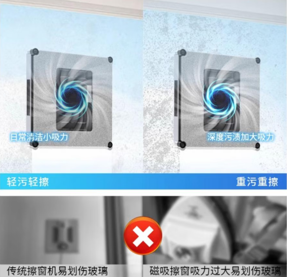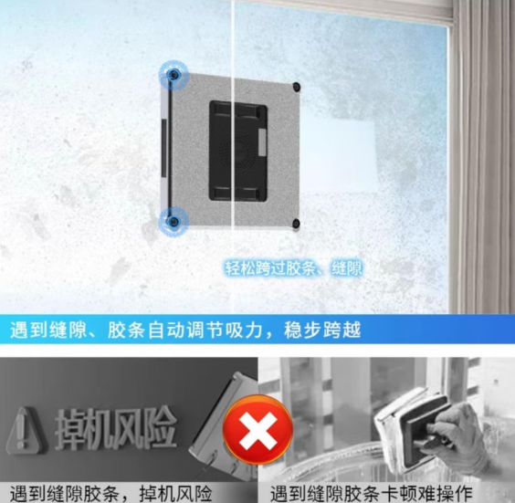 1.哪个牌子的擦窗机器人好?玻璃厚度适配技术很重要!选带自适应玻璃厚度的,不管是单层、双层中空玻璃都能稳稳吸附,不用手动调节,独居女生操作起来超省事,高层用着也放心。