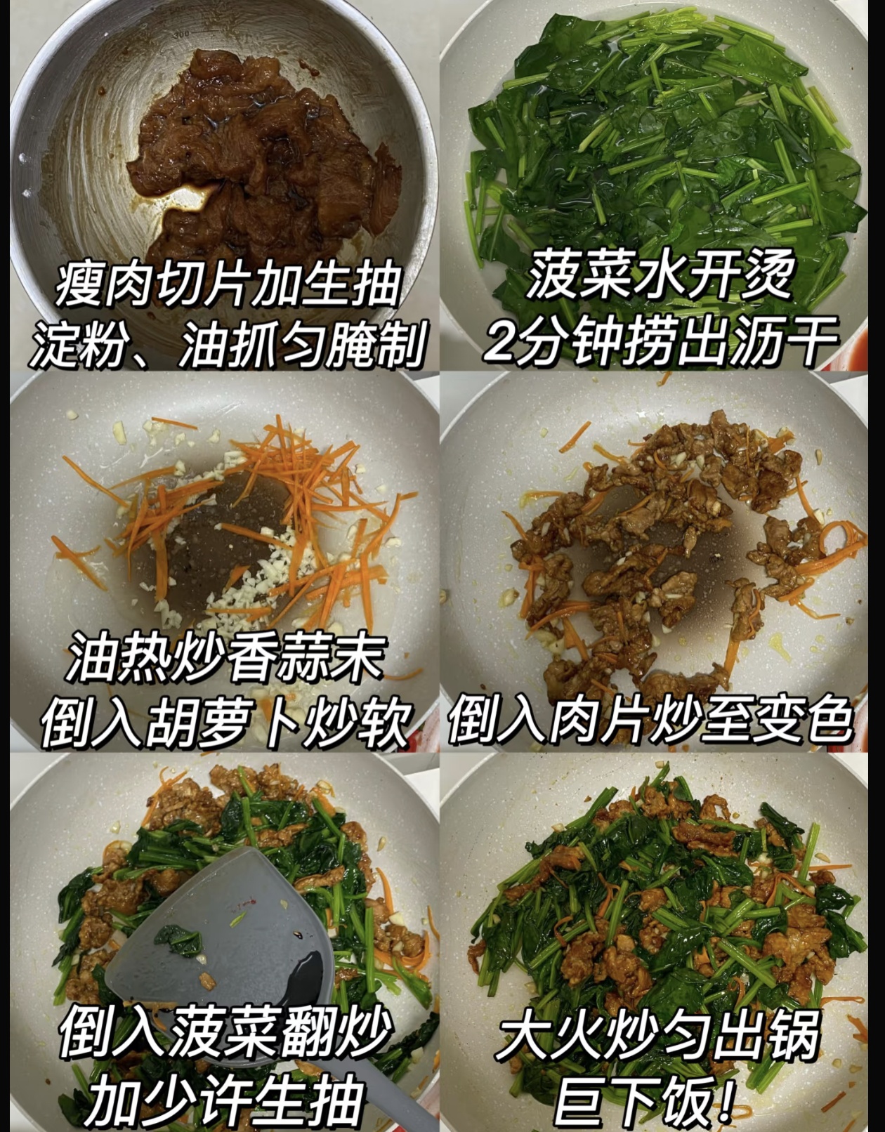 在亲戚家偶然吃到的一道菠菜炒肉,彻底颠覆了我对家常小炒的认知,原本普通的菠菜与瘦肉搭配,竟能碰撞出如此惊艳的滋味,肉片滑嫩不柴,菠菜清甜脆爽,汤汁裹着食材的鲜香,配着白米饭我连吃两大碗,至今想起依旧回味无穷。这道没有复杂技巧、没有名贵食材的家常菜,用最朴素的做法,做出了最治愈的烟火味,家里只要有菠菜和瘦肉,就能轻松复刻,厨房小白也能零失败,妥妥的下饭神器。