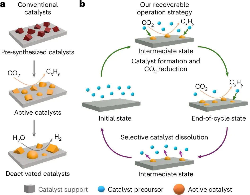 在这里,作者在反应过程原位生成反应中的催化剂,并通过原位Raman与同步辐射XAS验证了其可逆性,有效的抑制了结构失活,实现了CO到CH的高效、稳定电化学转化。