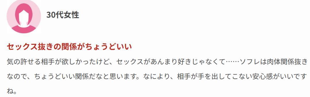 最重要的是,对方不会抱着发生关系的目的对我出手,很有安心感。”