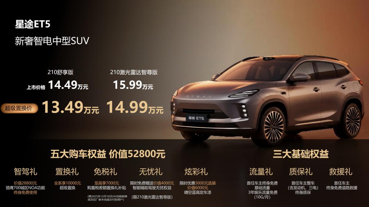 在15万这个级别,能够给星途ET5比智能化的,可能真的不多。毕竟,这是地平线征程6P芯片,首次落地装车,将智能辅助驾驶的门槛再次降低。智能化普惠之选,年轻家庭的轻奢选择,星途ET5于12月14日在沈阳亮相,面向东北市场开启销售。