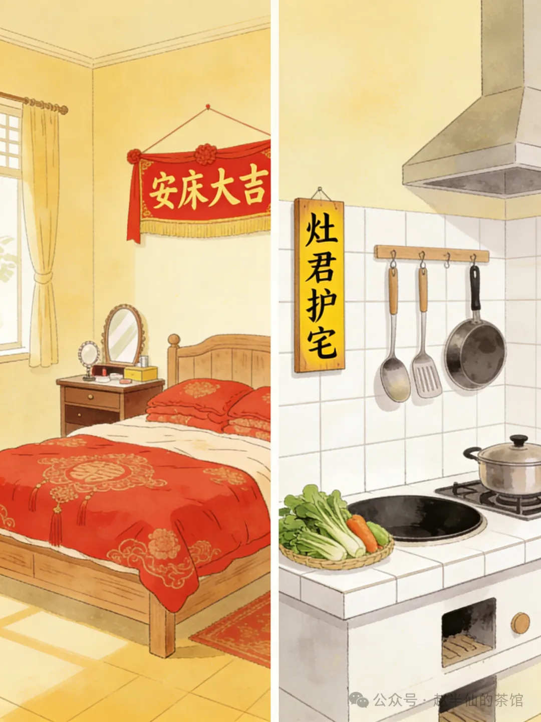 星宿配位里,床为“养神之所、聚气之地”,对应天星中“天辅星”,主家人健康、精神状态;灶为“养命之源、聚财之地”,对应天星中“天厨星”,掌管家人健康运和财运,这两样都是新宅的重中之重,《摇鞭赋》也有“安床择吉,身安体健;安灶择吉,财禄自来”的口诀,一定要找个好日子安床、安灶。
