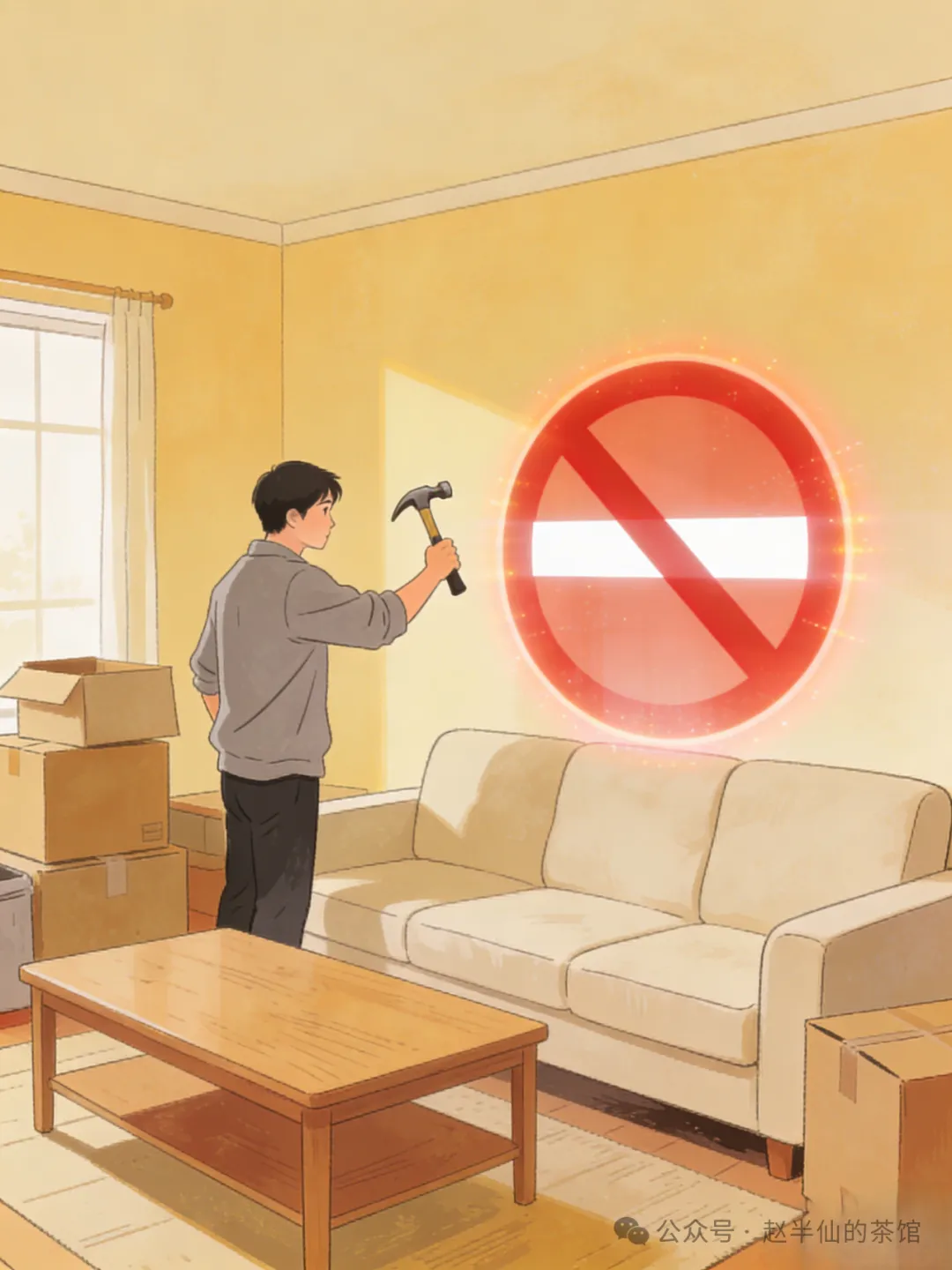 说白了,搬家后再施工,家里闹闹腾腾、鸡犬不宁,对应星宿中“天关星”(门户星)被扰,凶煞气场容易趁虚而入,财神爷也会被吓跑,富贵难进,还怎么旺宅旺业?所以记住,搬家后尽量别施工,哪怕是小整改,也最好等新家气场稳定(至少1个月)再进行。