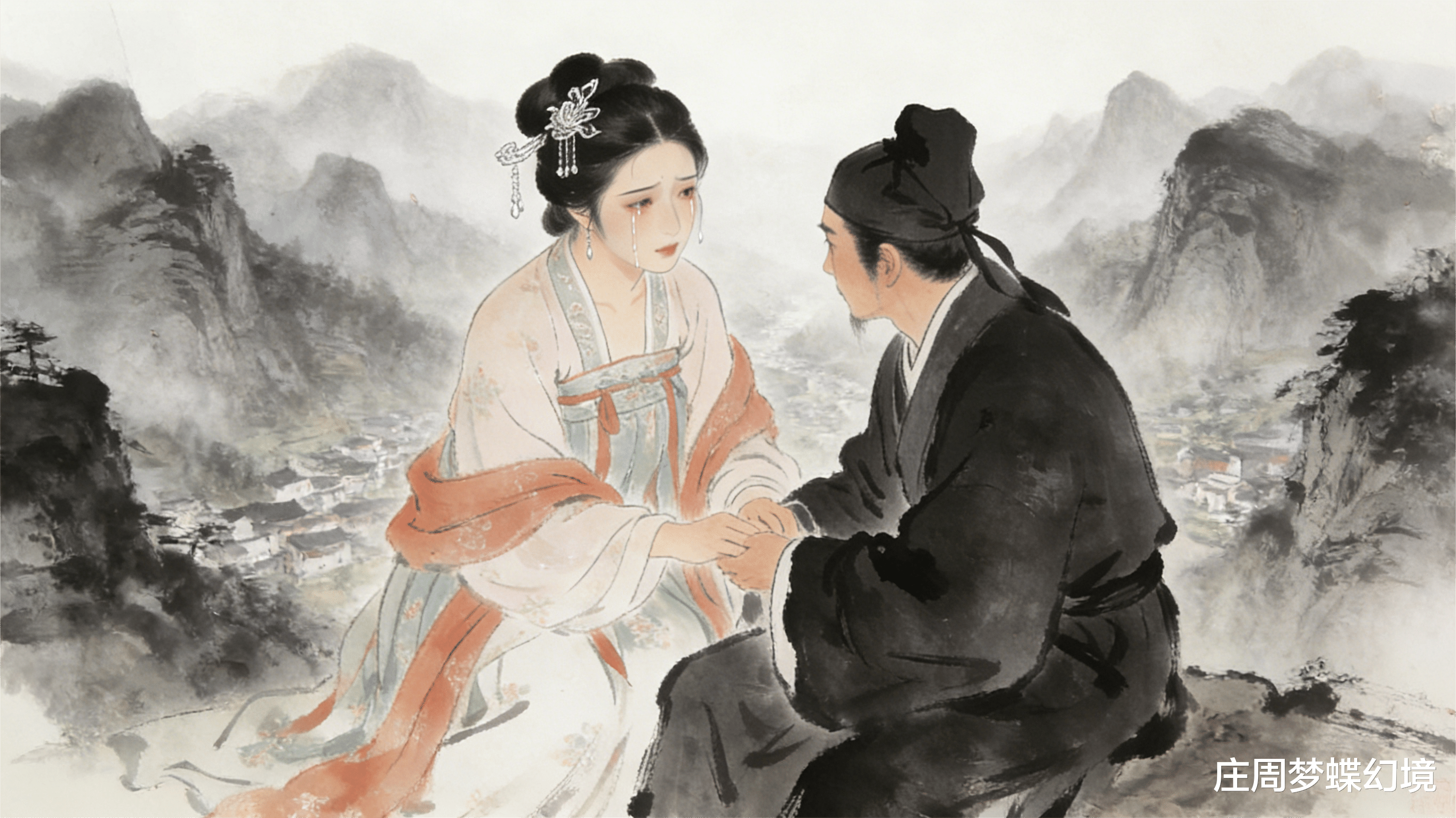 第二天王子服去屋后,果然有个半亩大的园子,细草长得像毡子一样软,杨花飘落在小路上。三间草房被花木环绕着,他正沿着花丛走,听见树顶上有“簌簌”的声响,抬头一看,婴宁正坐在树枝上。看见他来,婴宁笑得差点从树上掉下来。“别笑了,要摔着了!”王子服急忙喊。婴宁一边往下爬一边笑,根本停不下来,快到地面时脚下一滑,真摔了下来,笑声这才断了。王子服赶紧扶她,趁机悄悄捏了捏她的手腕。婴宁又笑起来,靠在树上直不起身,过了好一会儿才平复。