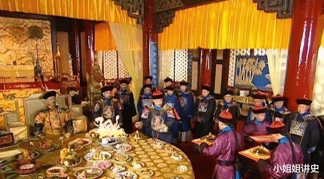 乾隆本人如天神般端坐在大殿正中接受众人的朝拜。