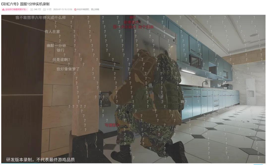 包括在国内各大社交平台上,游戏的热度也很高。比如说国服的首个官方实机视频发布即斩获300万播放量,冲上B站热搜第9;国服过审的微博话题阅读量破5000万,讨论量超10万;而在泛用户更集中的抖音,《彩虹六号》相关话题播放量合计已超10亿。