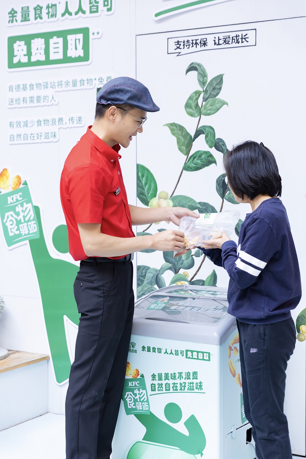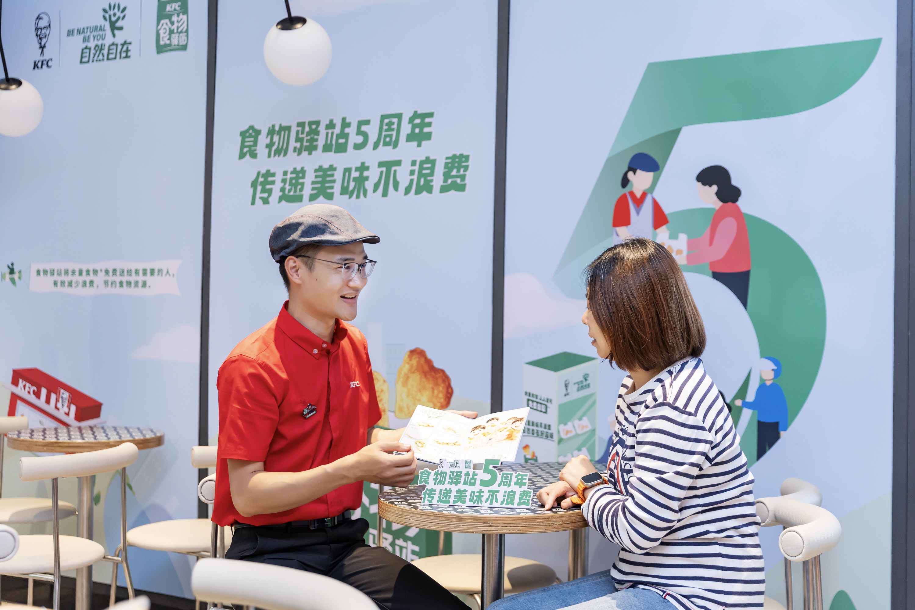 在全国首批食物驿站广州淘金肯德基餐厅,餐厅经理黄永立提供了可行性建议助力项目落地。“项目初期不少居民对免费食物概念不熟悉,我和餐厅伙伴一起和社区居民宣导。”食物驿站启动后,永立持续向周边社区积极传递余量食物不浪费理念,并推动开展主题儿童科普活动。“下班来取一份余量食物,心里踏实又暖和。”家住附近社区的陈师傅是食物驿站的老熟人,谈及这五年的陪伴,他满脸感慨,“节约粮食的做法非常好,值得推广。”这份来自社区的心声,正是食物驿站五年来不计其数的温暖故事——让节约粮食的理念走进日常,为低碳环保注入温情力量。