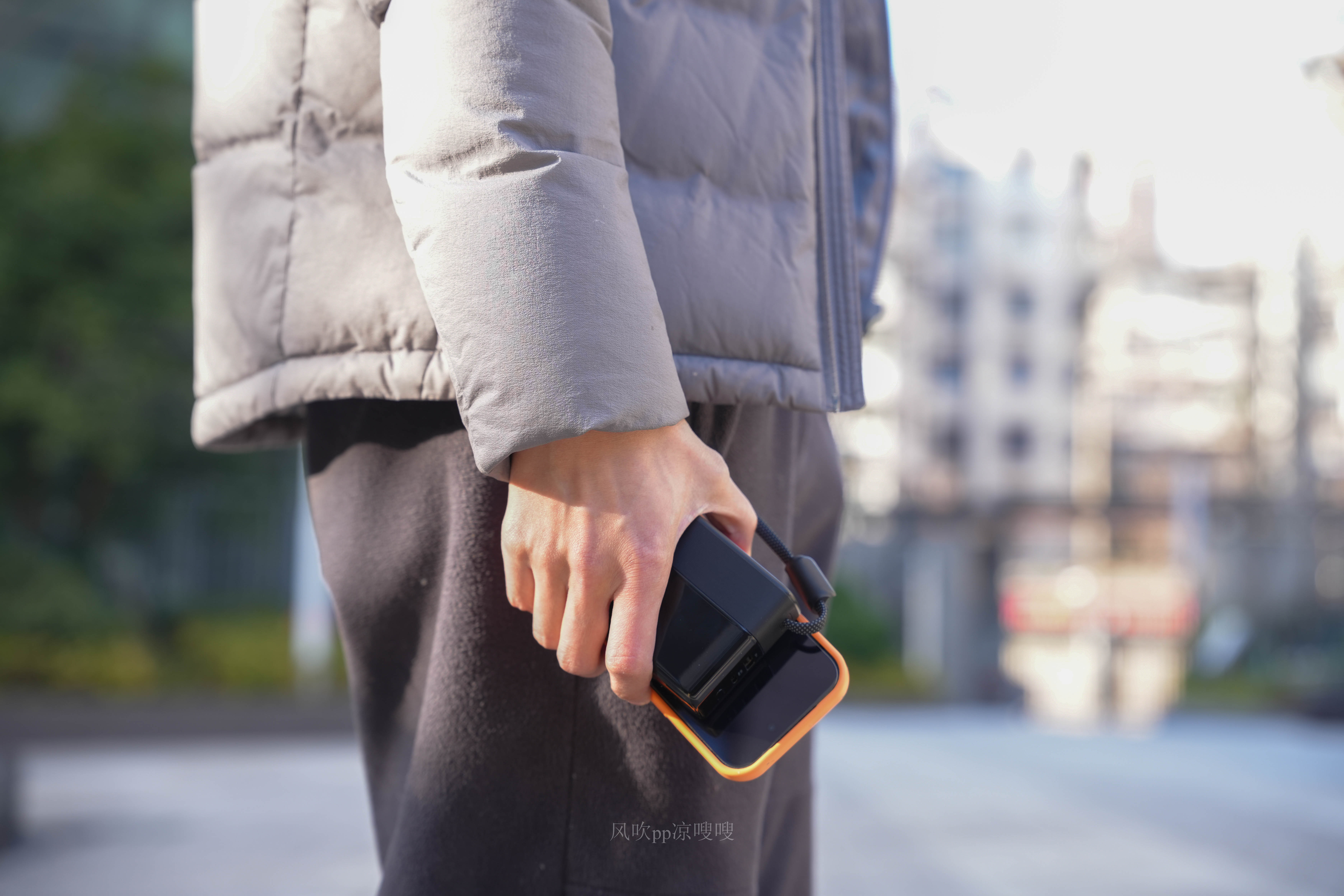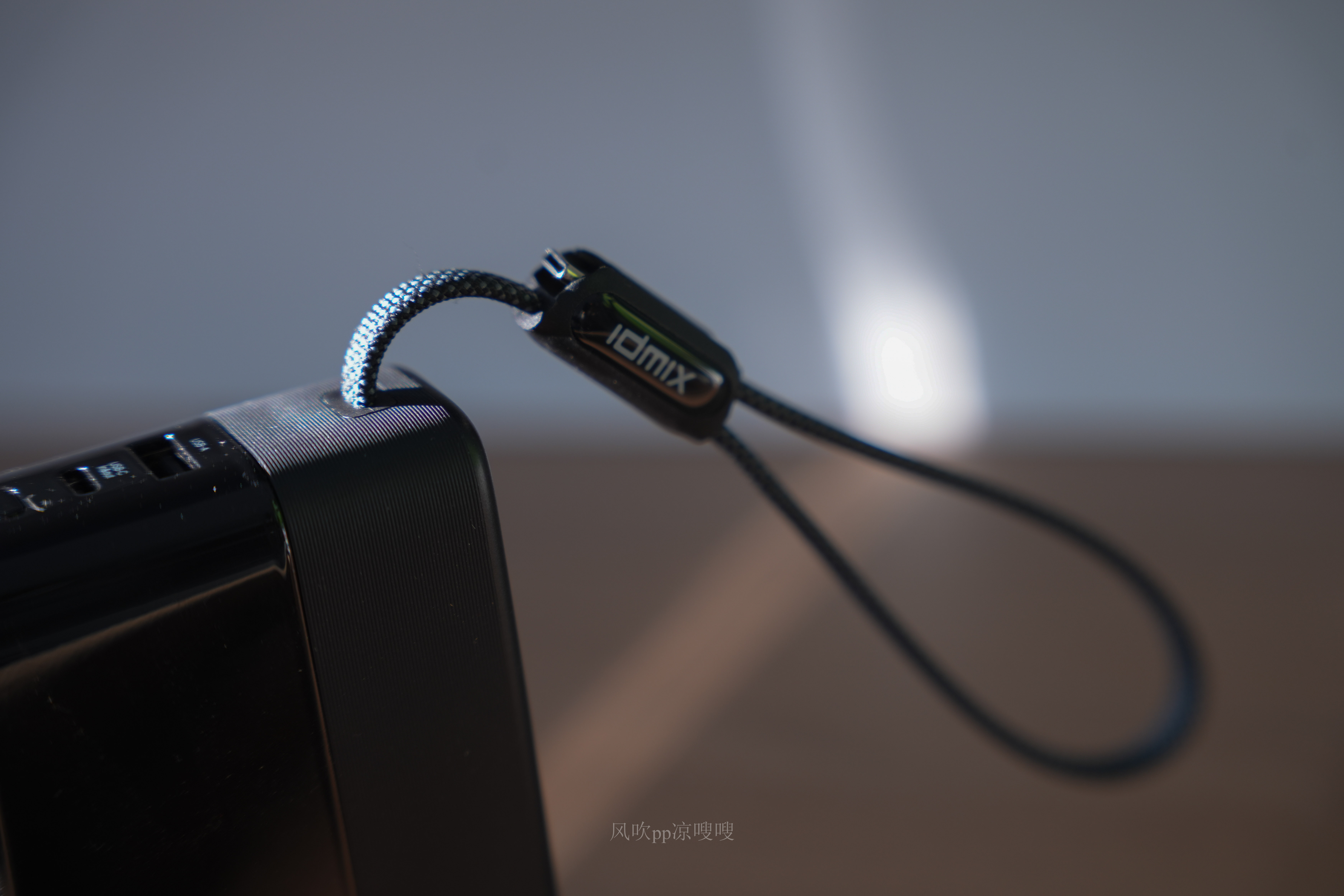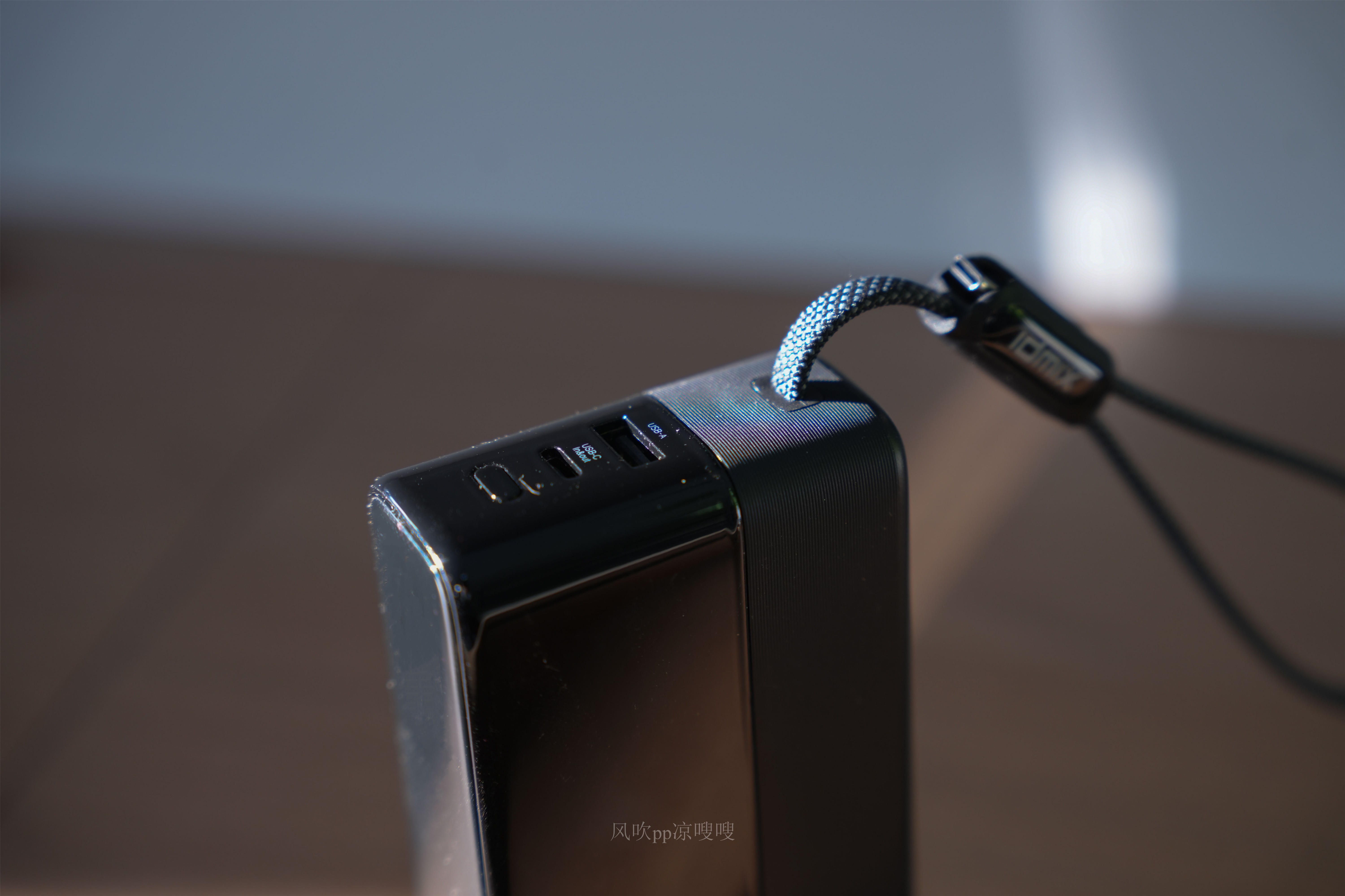 另外一个亮点是自带一根高密度编织Type-C线,它同时支持最高100W的输入与60W输出。这意味着在大多数情况下,你只需带上充电宝本身,就能为设备或为自己充电,极大减少了忘记带线的烦恼。这根线的质感扎实,还可作为挂绳使用,便携性加分+1。
