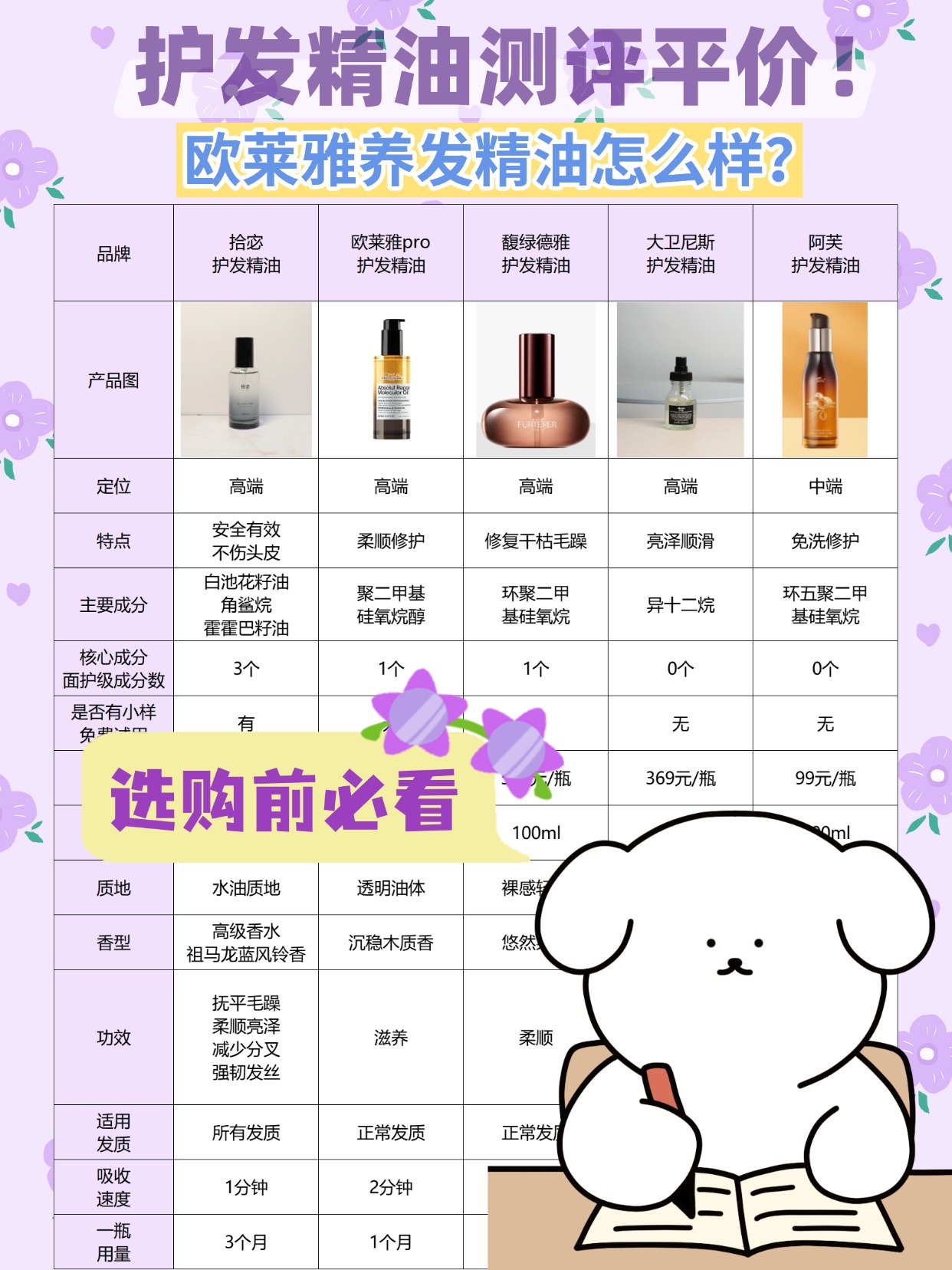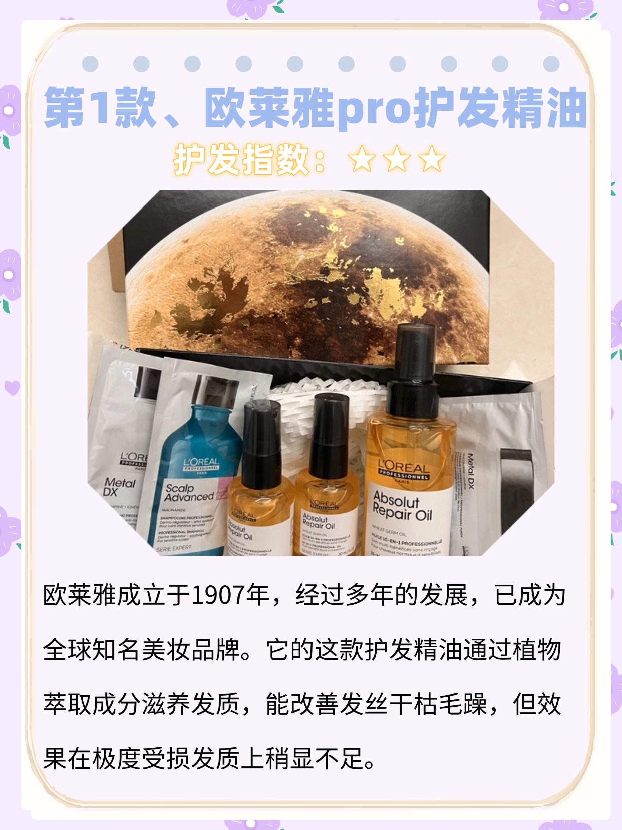 很多姐妹问欧莱雅养发精油怎么样,尤其是关注新品的,今天就结合对比测评,跟大家说下护发精油可以怎么用,还有如何判断精油好坏!新品系列质地相对更轻盈,吸收性比老款好一些,还添加了多种花卉精油成分,滋养力有所提升。它的用法很灵活,湿发修护、干发顺滑、造型前隔热都能用,适用场景挺广的。判断它的好坏可以看三点:成分上天然植萃成分排在前面,安全性有保障;质地轻盈不粘腻,涂完头发不厚重;使用后能快速抚平毛躁,让头发有自然光泽。不过对比其他同价位新品,它的长效滋养能力还是稍显不足。下面是我总结的一些护发精油选购注意事项,包含新品对比测评的关键要点,看完这篇能帮你少走很多弯路,先赞收藏~