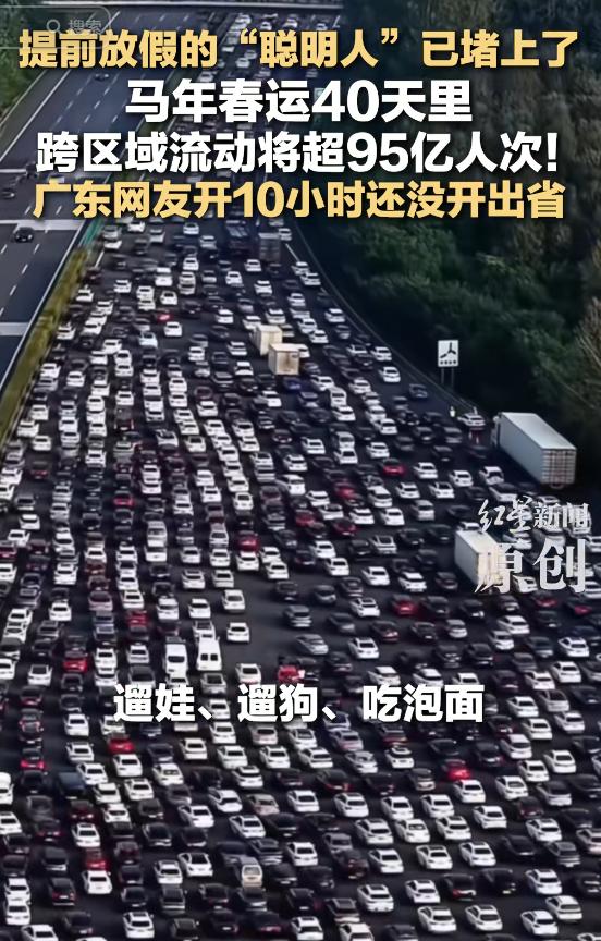 该网友感慨,原来大家都是聪明人,那就一起堵车。