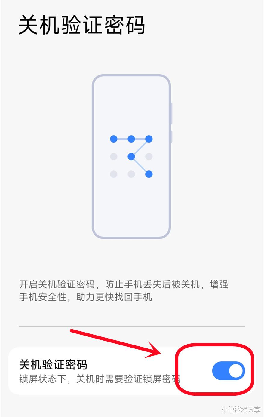 第一个设置,打开关机验证密码开关,让手机“关不了机”。