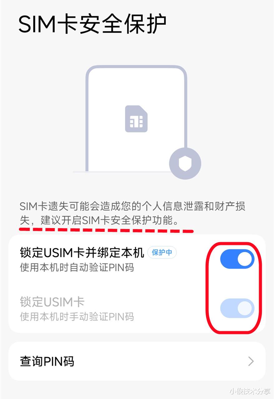 所以咱们需要把手机上面的SIM卡防护开关打开,打开之后,即使别人拿到我们的手机卡,换到其他手机也无法使用,必须输入PIN码才能使用。这样一来,即便对方拔走你的卡,也无法用它接收任何验证信息,这样就彻底减少了咱们的资金损失,而且一旦连续输错多次,手机卡就会被永久锁定,需要带身份证去营业厅才能解锁,虽然麻烦,但安全至上,因此大家设置完成之后,一定要牢记好。