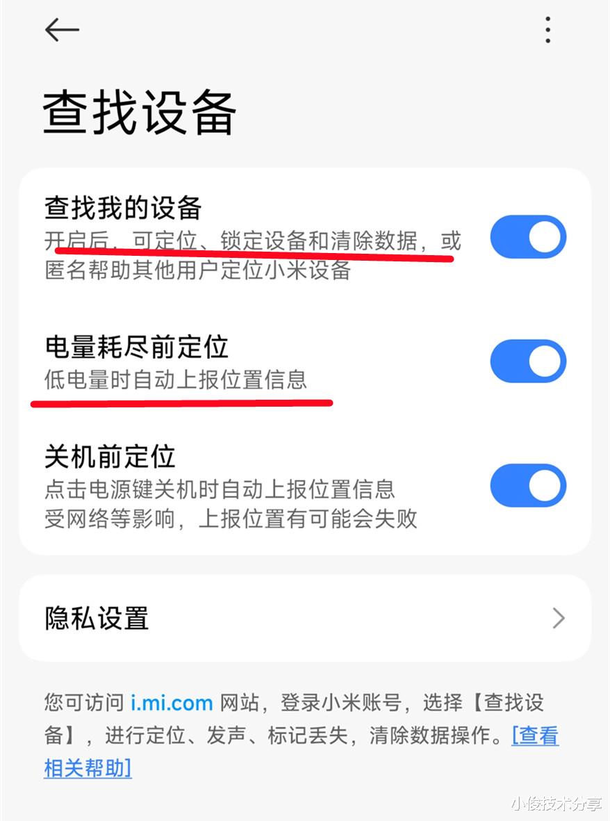 这个功能可是找回手机最核心、最强大的功能,但是90%以上的人都从没打开过,同样在隐私与安全里面,把查找设备的开关打开!