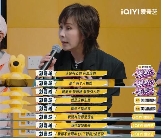 在关于“能否与人工智能谈恋爱”的辩论中,何赛飞激情站队正方表示AI能提供情绪价值,刘嘉玲坚持“人的温度无法设定”,宁静在现场分享自己的AI驯化计划时,张柏芝举起话筒提问:“如果停电呢?”直接杀死了比赛。而在比赛结束后,何赛飞现场“催婚”,网友辣评:“最强催婚现场”、“稳定在世界中心呼唤爱的何老师”!与其说这是一场辩论赛,不如说这是繁花团用自我经历总结的“人生答辩”。