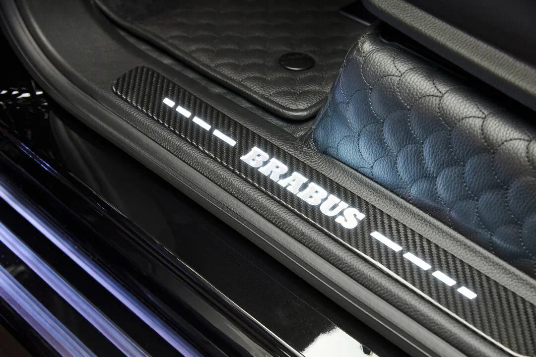 前脸有大型进气口和集成前扰流板的BRABUS前保险杠,全新设计的发光碳纤维格栅框架完成了整体的视觉效果,而可发光的BRABUS前徽标,确保即使在夜幕下也具有超高的辨识度。