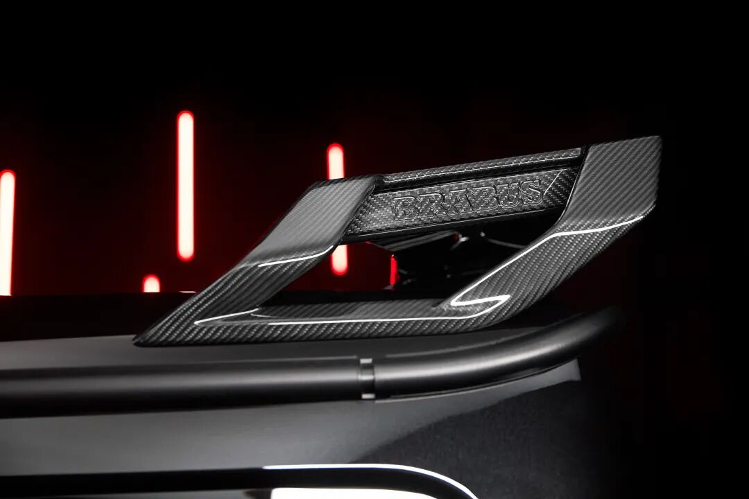 全新的碳纤维后扰流板优化了空气动力学性能,尾门上装有一个集成了红色发光BRABUS徽标的专属碳纤维装饰件。