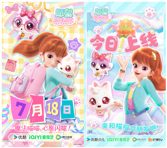 全新动画片《愿望喵喵》正在热播中!这部面向3-8岁女孩的魔法萌宠动画片于2025年7月开播,自上线起热度居高不下,多次名列各大视频平台少儿热播榜前茅,全平台资源位持续加推,金鹰卡通、优漫卡通、上海炫动、嘉佳卡通等电视卡通卫视也在黄金档进行了多轮播出,收视率喜人,于孩子们当中掀起一股萌猫热潮!