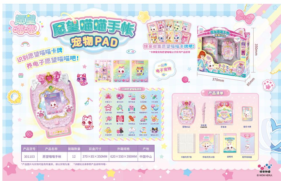 《愿望喵喵》动画同款玩具亦在市场上深受消费者的喜爱。这些玩具外形精致美观,充分还原了动画片中的形象,满足了孩子们对童话世界的幻想,各种益智的功能也能充分匹配孩子们在成长过程中手脑协调锻炼、情感陪伴等需要。