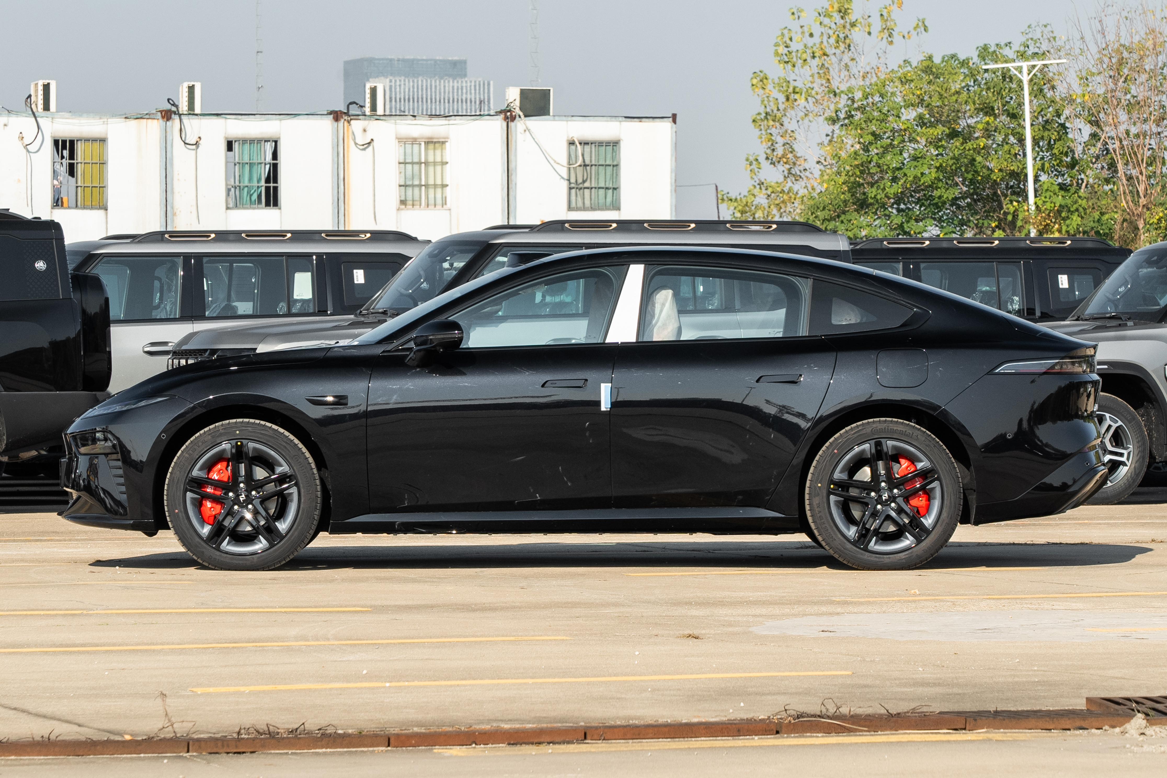 先看看这高颜值,一眼看见东风奕派eπ007+增程版,就让人眼前一亮,流线型的轿跑车身搭配溜背式的设计,看着就协调舒适,整车尺寸长宽高分别为4880×1915×1476mm,轴距达到2915mm,这样的尺寸也带来了不错的空间表现。无框车门的设计可不光是好看,还可以有效降低风阻,全车经过了23处空气动力学部件优化,风阻系数低至0.209,19英寸疾风之影运动轮毂,动感时尚,抓地力更强。车身尾部,全系标配的随速升降电动尾翼是个亮点,可以根据车速调节升降状态,低速时收起减少风阻,高速时则升起增加下压力,令车身行驶更加稳定。外观配色方面,新车提供"夜影黑、晨曦白、苍穹灰、幽兰紫、向阳金、港湾蓝"六种颇具个性化的配色,小编试驾的这一款是新增的港湾蓝色,这颜色是很温和的浅蓝色,看着清爽又舒服,在阳光下带点细闪,耐看又充满质感。