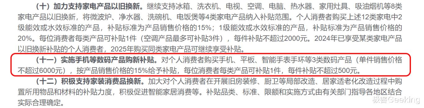 尽管明年的国补细则还没有出来,不过可以先参考看看今年的国补规则,在年初的 1 月 8 日,两部门联合发布《关于2025年加力扩围实施大规模设备更新和消费品以旧换新政策的通知》。