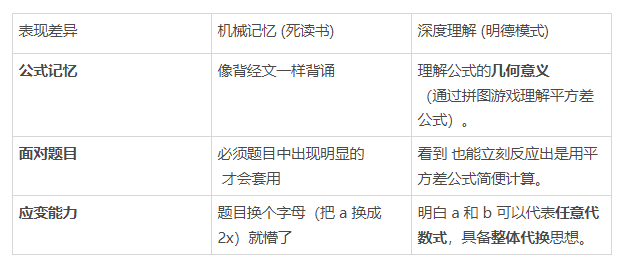 机械记忆 vs 深度理解 (Rote Learning vs Deep Understanding)