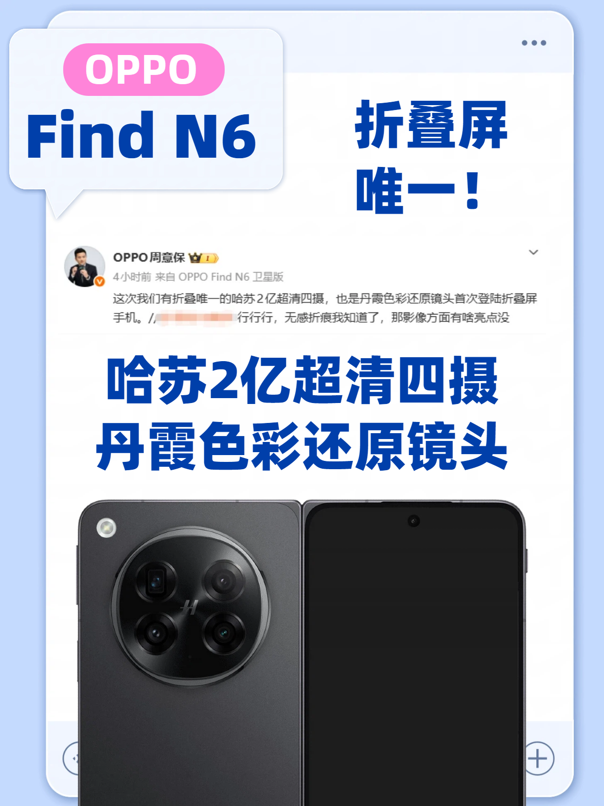 值得一提的是OPPO Find N6在影像上也超豪华!应该是折叠屏中唯一搭载哈苏2亿超清四摄的机型,之前好评满满的丹霞色彩还原镜头这次也上机了~这下折叠屏也成出片神器了吧!