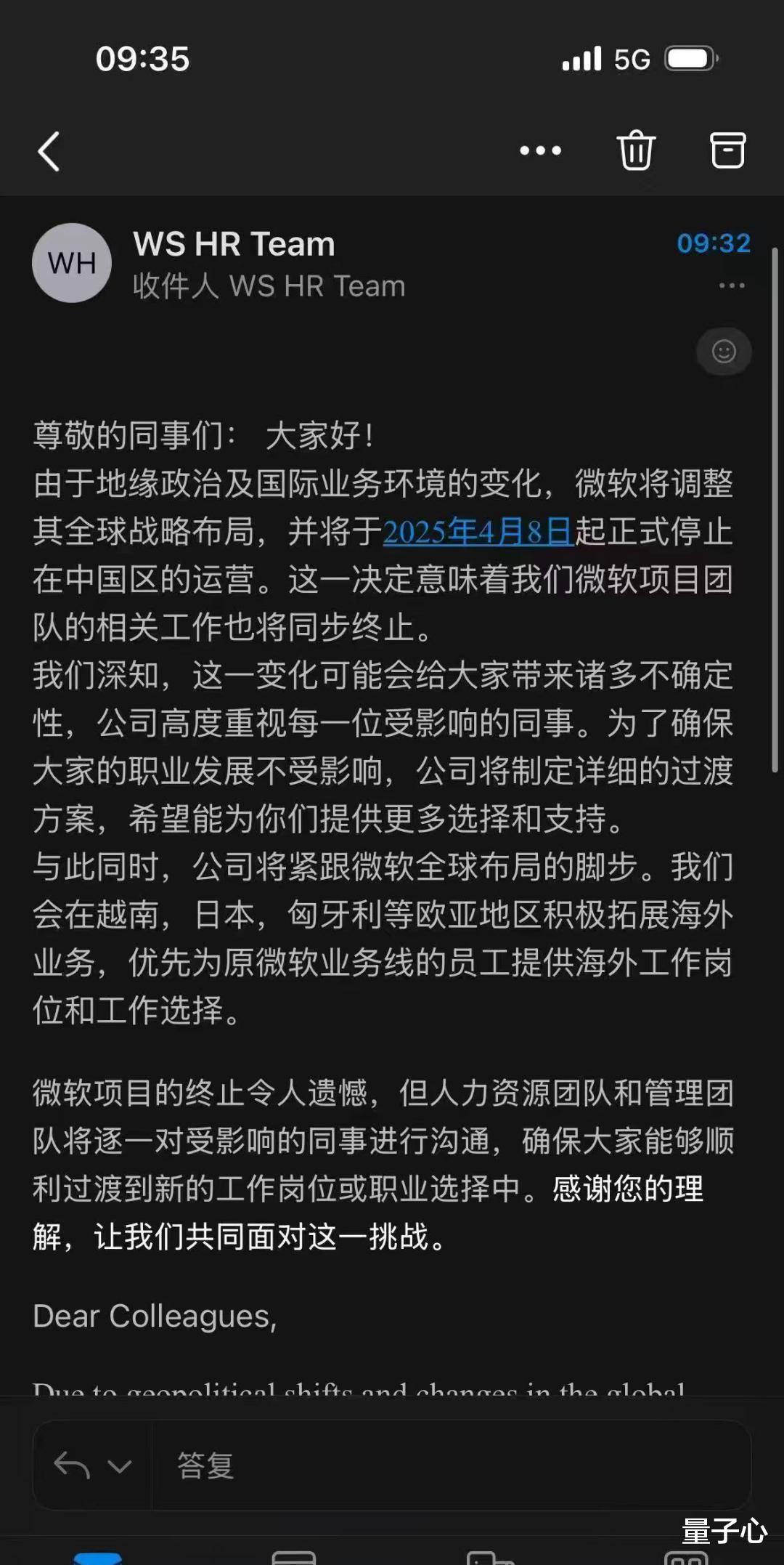 4月7日,微创公司一封内部邮件截图在网络流传,邮件内容显示,由于地缘政治和国际业务环境变化,微软将调整全球战略布局,微创的中国区微软项目团队工作也将同步停止。
