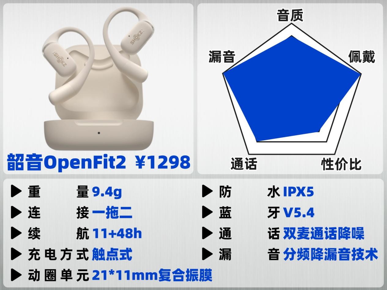 推荐理由:音质、通话、佩戴、都几乎没有短板的中端开放式蓝牙耳机。