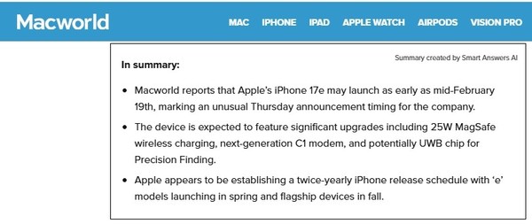 据Macworld报道,苹果备受期待的iPhone 17e的发布细节正在配件制造商中流传。有消息人士指出,该机最早可能在2月中旬,具体为2月19日(周四)发布。CNMO注意到,这对苹果而言是一个不太常规的发布时间,该公司通常选择周一或周二发布新品。