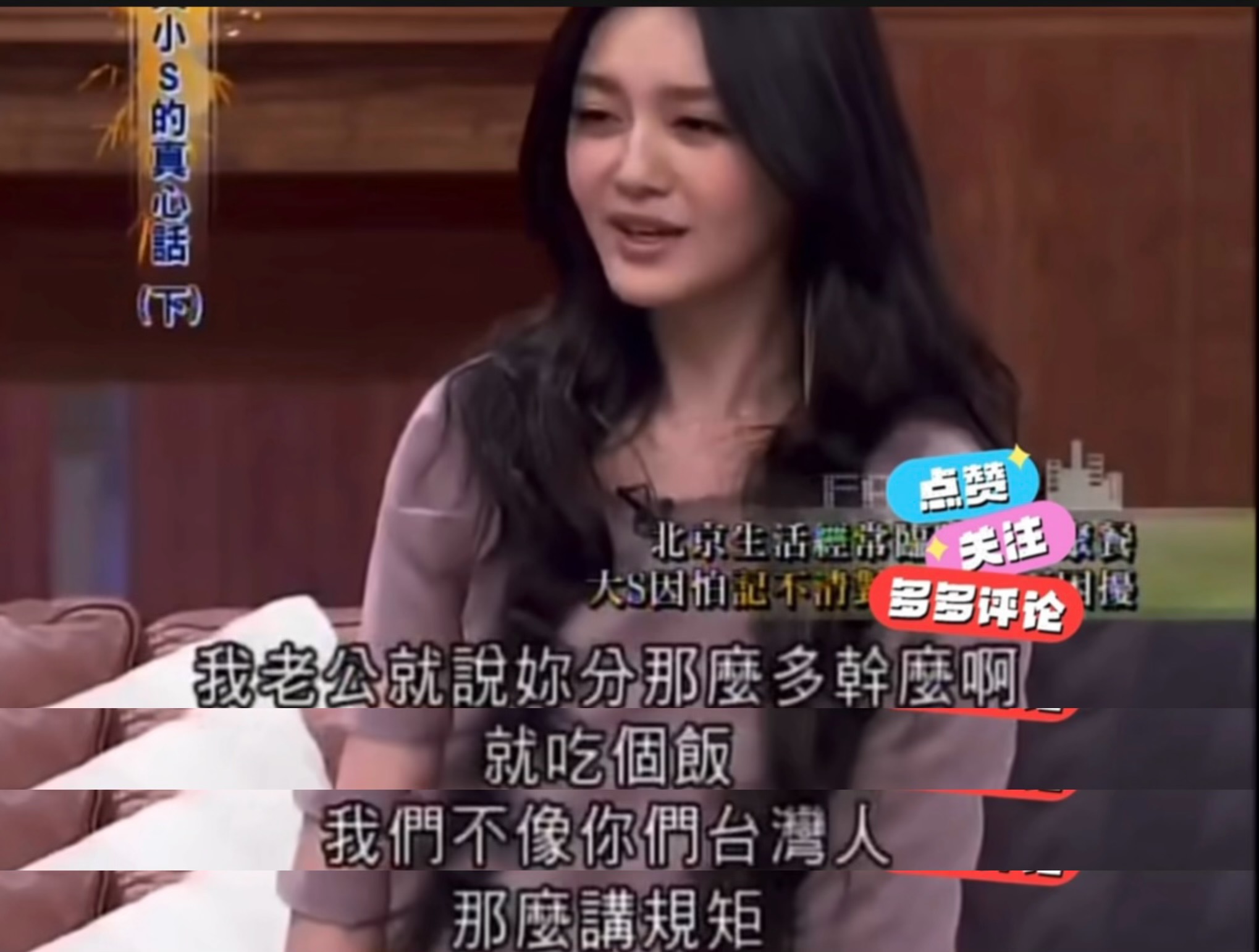 比如大s曾经讲她新婚后,和汪小菲在北京和朋友吃饭的故事。