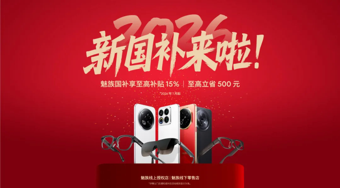2026年的新国补也来啦!魅族手机、智能眼镜国补最高补贴15%,至高立省500元。