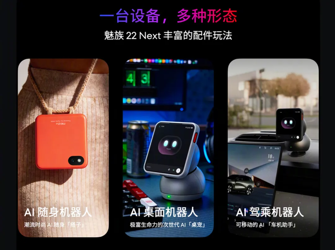 魅族 22next神秘亮相,一款从未公布的项目“小方块”,是对原生AI Device的勇气探索,历经九版推倒重来:4英寸迷你机身、5G独立终端、AI一键语音问答,多样的AI虚拟形象,可外接丰富配件一台设备,多种形态。