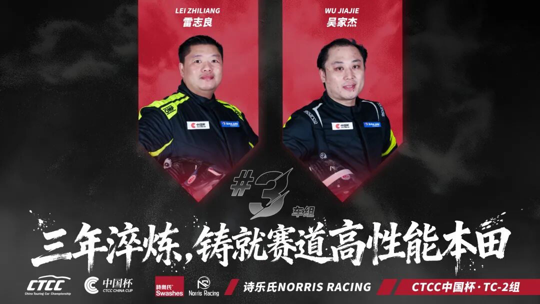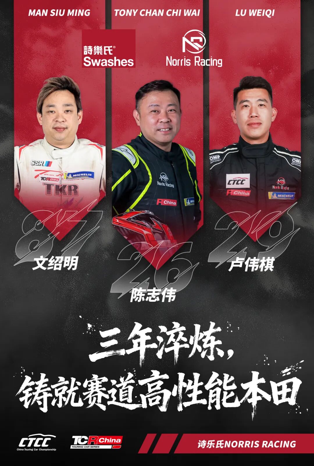 作为CTCC赛场上冉冉升起的新星,诗乐氏Norris Racing车队经过前两个赛季的历练已逐步站稳脚跟,上赛季更在湖南株洲站首回合斩获TCR中国锦标赛俱乐部车队杯及车手杯冠军,跻身TCR中国锦标赛俱乐部队积分榜第四。2025赛季,车队得到诗乐氏实业(深圳)有限公司的全力支持,以“诗乐氏Norris Racing”之名出征,参赛阵容由功勋车手陈志伟携手新加盟的实力战将文绍明、卢伟棋组成,本田思域TYPE R FK7 TCR继续作为主力战驹。此外,车队还在上海嘉定站首次启用本田思域TYPE R FL5 TCR。同时车队在赛季揭幕战及收官战开启双线作战,派出雷志良/吴家杰、许耀?等车手驾驶本田思域FD2参与CTCC中国杯TC2组别角逐。