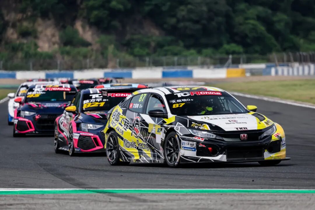 9月,重返上海国际赛车场,车队迎来车型升级,文绍明启用87号新战车本田思域TYPE R FL5 TCR,陈志伟继续驾驶26号赛车。借助揭幕战积累的赛道经验,技术团队通过赛前练习优化车辆设定,排位赛中文绍明表现惊艳,成功晋级第二节排位赛并斩获组别第三、全场第六,刷新赛季排位赛最高顺位;陈志伟夺得组别第八。