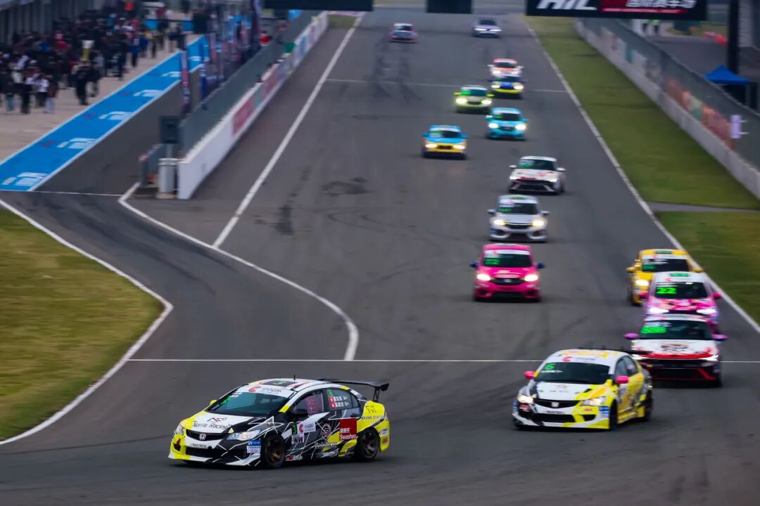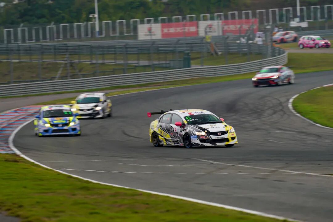 来到绍兴柯桥,盛夏时节的浙江国际赛车场气温逼近40℃,极端高温不仅考验车手体能与专注力,更对赛车可靠性提出严峻挑战。首回合赛事事故频发,文绍明在混战中保全赛车,以全场第11、组别第四完赛;陈志伟则在争抢中遭遇意外遗憾退赛。