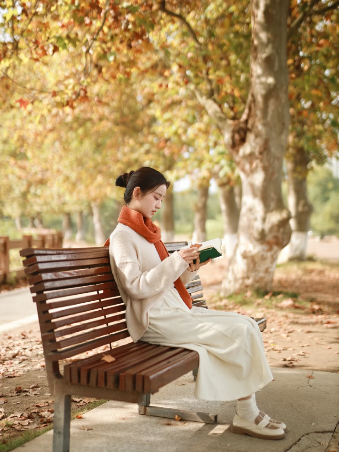 拍照密码穿卡其色或白色衣服,带本书或耳机当道具,坐在梧桐树下翻书,文艺感直接溢出屏幕。