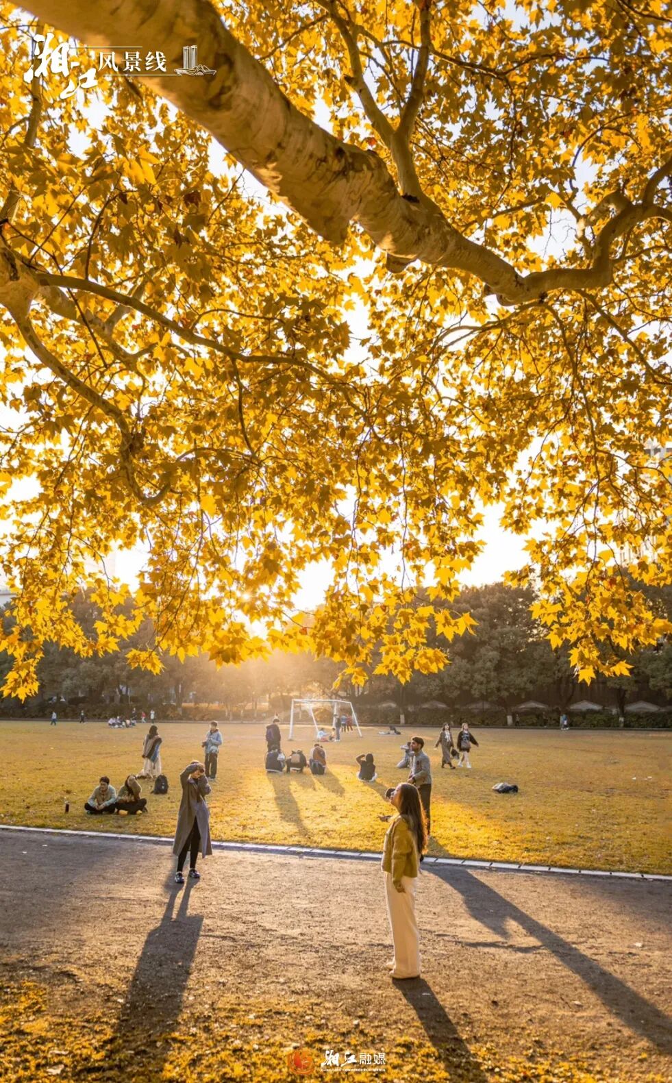 拍照密码一定要选晴天!柔和的阳光衬得叶子更透亮,摄影党带长焦镜头,能拍出梧桐枝叶交织的深邃感。