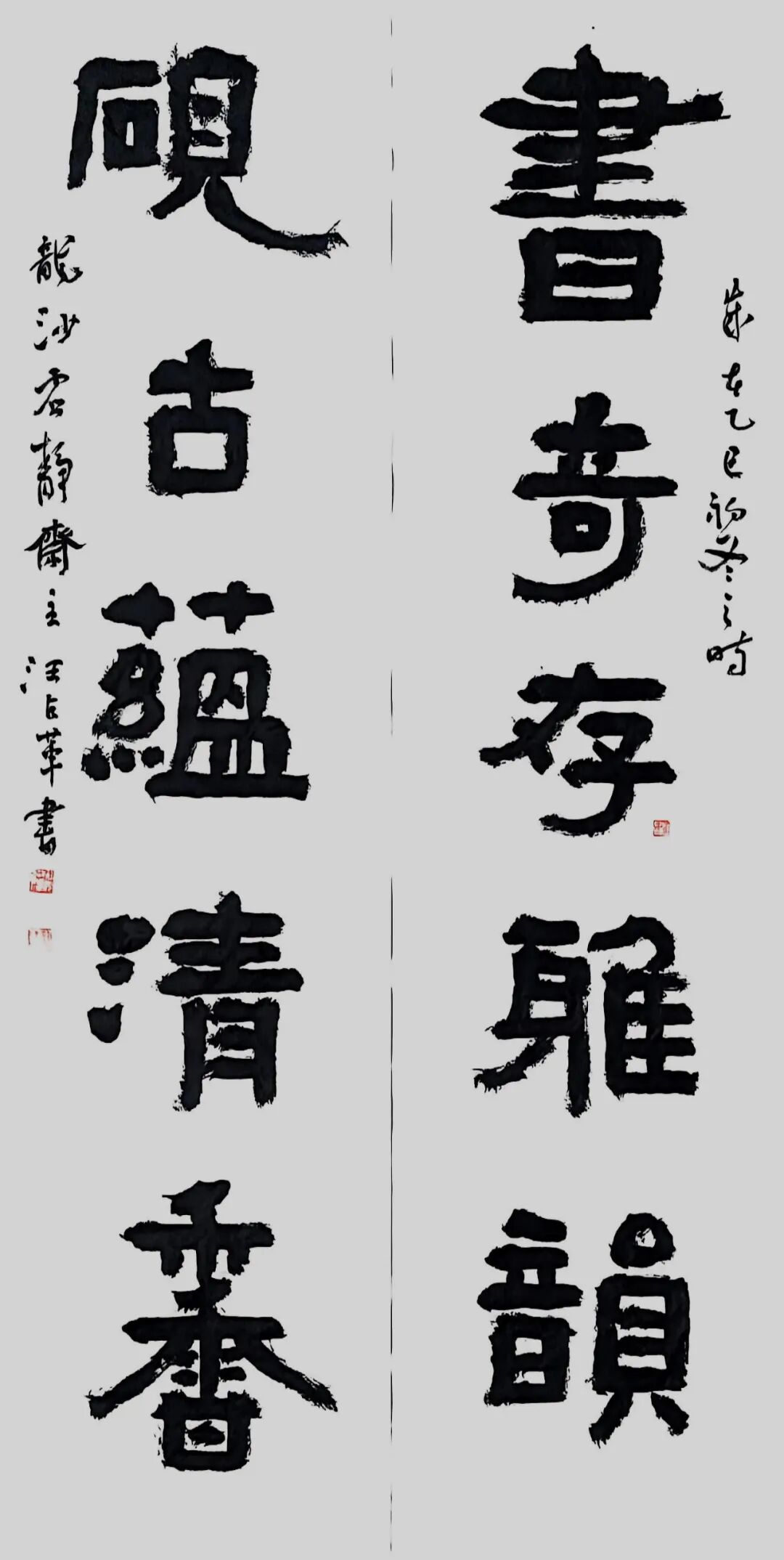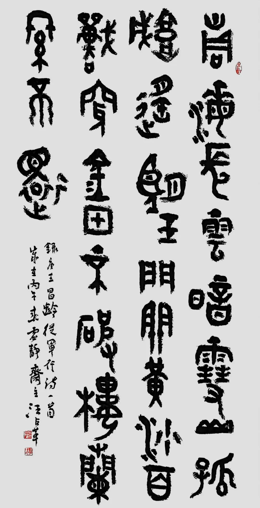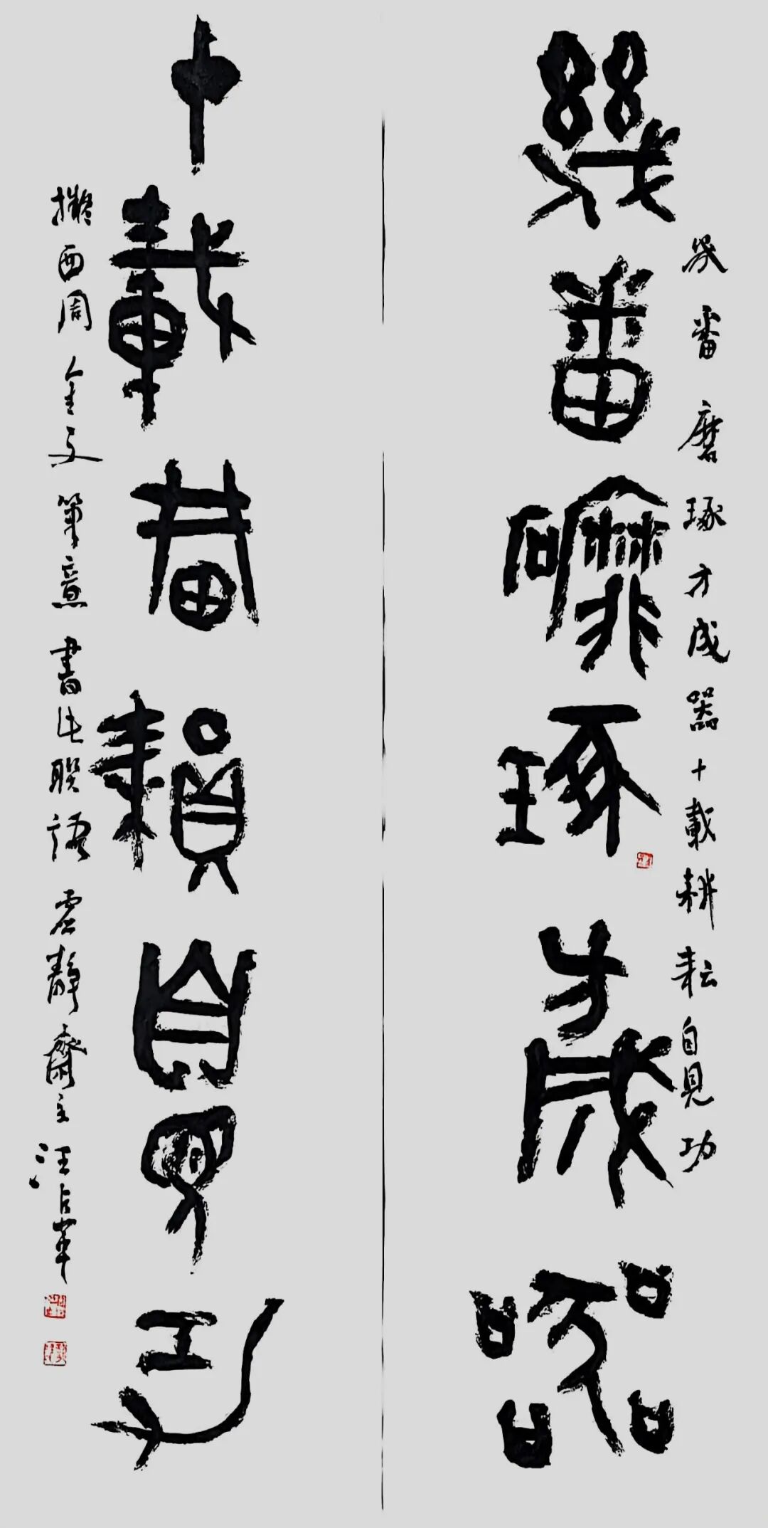 汪占革号愚盦,别署虚静斋、三百悟石堂。国家一级美术师,中国书法家协会会员,中国楹联协会会员,九三学社中央书画院成员,西泠印社社友会会员。黑龙江省书法家协会理事,篆书委员会副主任,篆刻委员会委员。齐齐哈尔大学硕士研究生导师,齐齐哈尔市政协委员,九三学社社员,市书画院副院长。书法篆刻作品参加中国书法家协会主办的各项展览三十余次。获奖入展情况主要有:全国第七、八、九、十二届书法篆刻作品展,全国第八届中青展,第二届兰亭奖展,全国第五、六届篆刻展,全国第五、七届楹联书法作品展,第四届中国书坛新人展,第二、三届篆书展,“深入生活、扎根人民”——第四届“文质兼美”优秀基层书法家创作活动作品成果展。荣获首届“杏花村杯”全国电视大赛铜奖,全国首届篆书作品展提名奖。有十余篇论文在专业报刊上发表,二OO四年被授予首届黑龙江省书法家协会“德艺双馨”会员称号,著有《汪占革书法篆刻》、《汪占革篆刻》作品集。