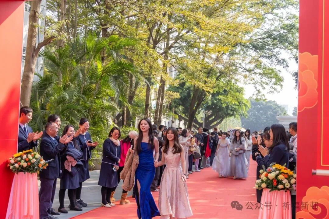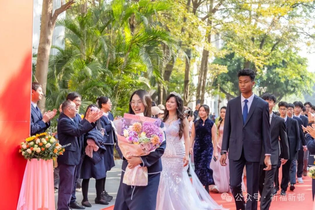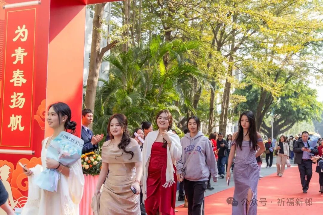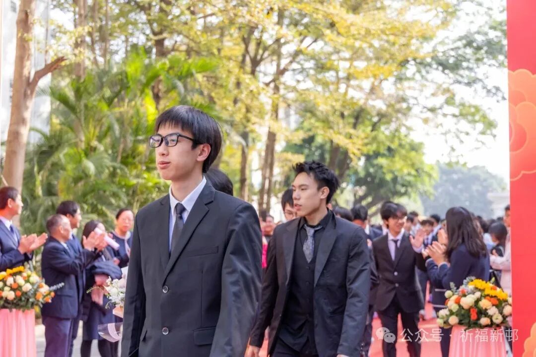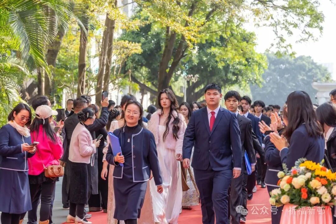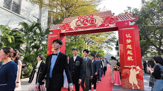 学子们身着笔挺西装、雅致礼服,妆容利落、自信从容,惊艳亮相。在各班班主任的陪伴引领下,他们并肩携手踏上红毯,步履坚定铿锵,踏启成长的新程;以成年为序章,满怀热忱憧憬,翻开人生的崭新一页。