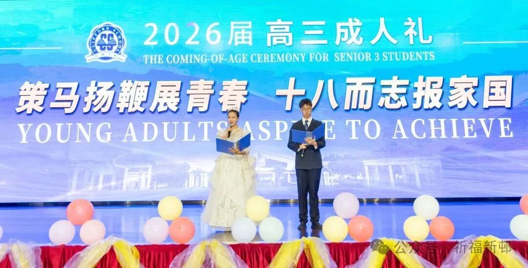 近日,祈福英语实验学校 “十八而志,逐梦远航”2026 届高三学子成人礼盛大启幕。在师长的殷切期许与父母的温情陪伴下,全体高三学子以昂扬之姿、铿锵之势,正式迈入成年人世界的大门,开启人生全新征程。
