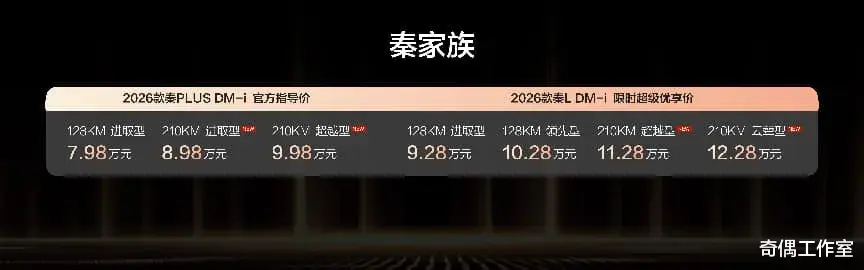 小结选择2026款秦家族DM-i,即是选择一种更从容、更经济、更安心。它用210公里纯电续航彻底消除日常通勤的油耗焦虑,以2110公里综合续航和2.79升百公里亏电油耗打破长途出行的边界,让“说走就走的团圆”成为常态。2026款秦L DM-i与2026款秦PLUS DM-i 210KM长续航版,凭借超长续航打破出行边界,以豪华科技配置重塑家轿体验,精准满足不同家庭需求。无论是秦L DM-i的云辇-C智能底盘、智能冷暖冰箱带来的品质提升,还是秦PLUS DM-i以8.98万元起的价位普及天神之眼辅助驾驶的诚意,都彰显了比亚迪对用户需求的深度洞察。