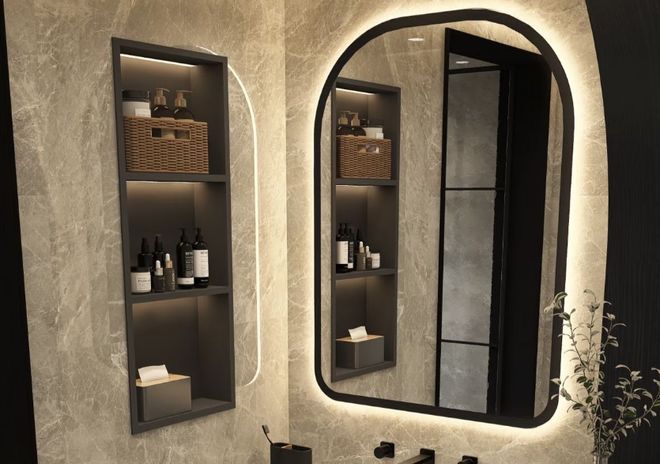 壁龛不会占用额外空间,可以说是小卫生间的收纳救星,而且整体感官很强,美观又大方。